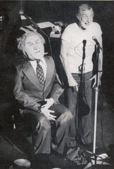 Whilst seated he also had a dummy and utilising the prevailing political scene, named it Gough Whitlam ( Leader of the Opposition and heading for Prime Ministership) and on the first night gave it a tap on the head with a baseball bat and got the laughs. By the end of the season he was standing and walking all over the stage throwing and beating the "Stuffings" out of it with the audience rolling in the aisles.