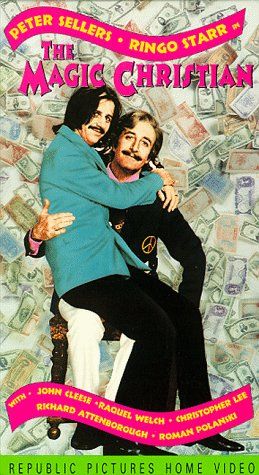 After attending a striptease version of Hamlet with Laurence Harvey and displaying most un-English bad manners at restaurants and auctions, the father and son wreak pandemonium aboard the maiden voyage of the Magic Christian, a vessel populated by topless slavegirls (ordered by "Priestess of the Whip" Raquel Welch), a stampeding vampire (Christopher Lee), and a scary chanteuse (Yul Brynner in drag) hitting on a jittery Roman Polanski.
